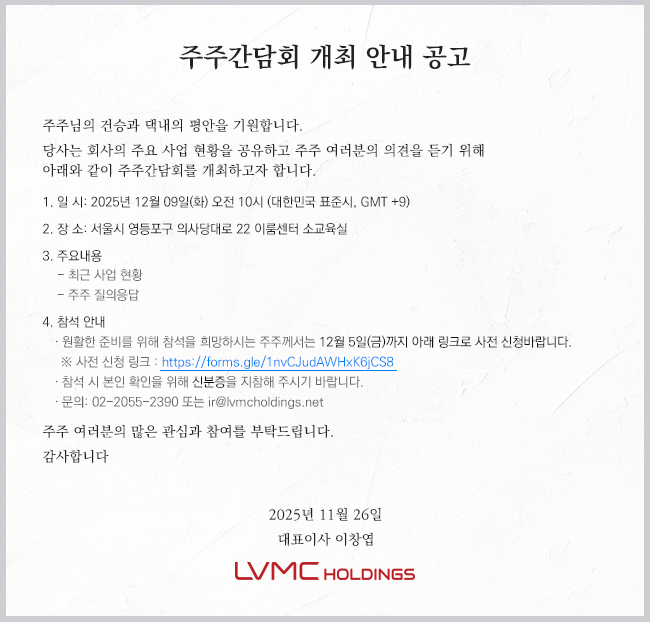 LVMC홀딩스의 다양한 소식을 확인해보세요.
